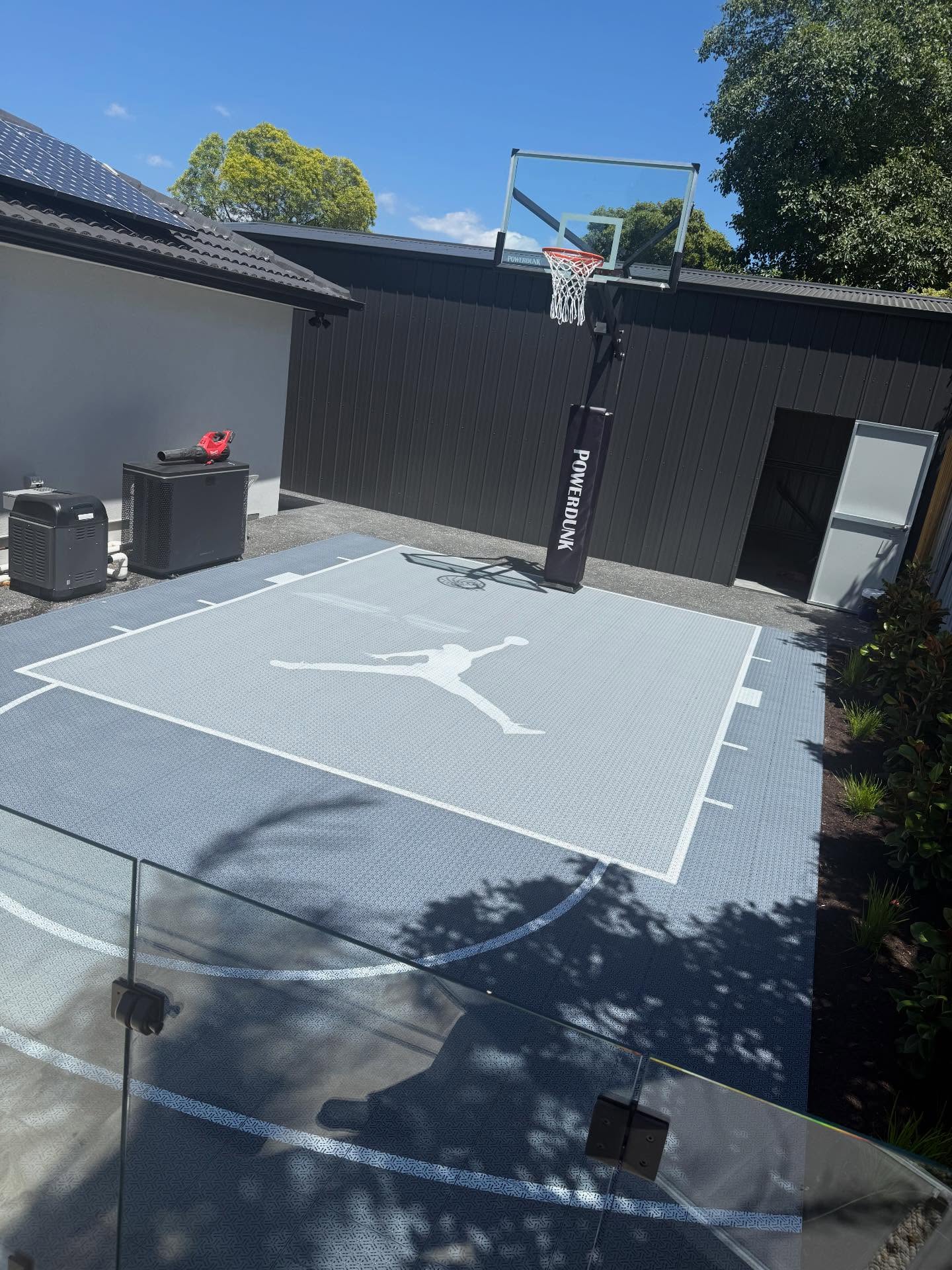 Custom basketball court we done from start to finish supplied tiles concreted the base supplied and installed the ring get in touch if this is something you would like in your backyard can do all shapes and sizes.